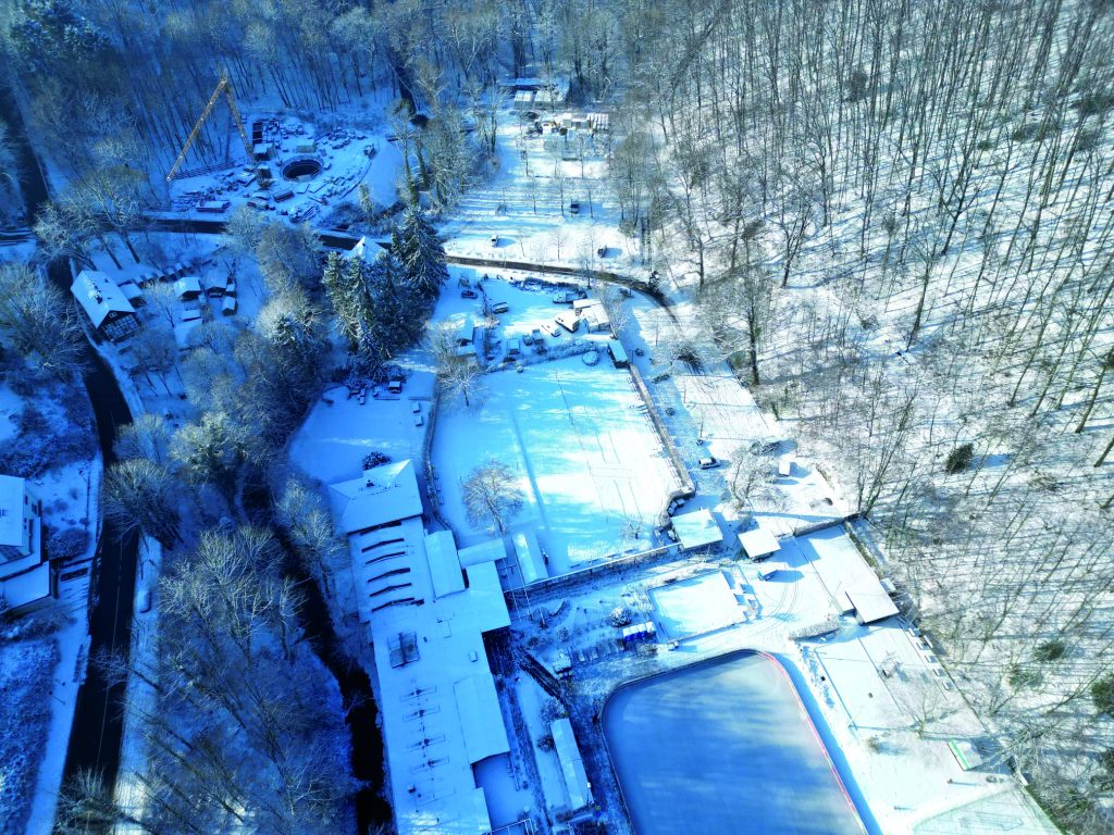 Anders der eisige Spaß im Ittertal, wo die Wintersaison Ende November begann und noch bis Mitte Februar andauert: „Wann genau Schluss ist, hängt jedes Jahr vom Wetter ab“, sagt Blum, der auch selbst liebend gerne über das Eis im Solinger Freizeittal gleitet. „Weil es sich härter, natürlicher und fester unter den Füßen anfühlt als das Eis in den Hallen“, erklärt er und spricht scherzhaft von seinem persönlichen Nordpol Feeling, das er vor allem dann habe, „wenn der Winter sehr verschneit ist und das Ittertal einer Landschaft in Nordeuropa ähnelt“. Dann könne es auch nach ein paar Stunden auf dem Eis ganz schön kalt werden. Das sei aber kein Problem, weil die „Quitte“, das Restaurant im Freizeitbad Ittertal, im Winter einen Kiosk betreibt: „Da kann man sich während der Eislaufsaison mit heißen Getränken versorgen oder Snacks und Zwischenmahlzeiten kaufen.“ Der Saal des Restaurants kann angemietet werden und bei entsprechend großer Gruppe sogar die komplette Eisbahn. Wer mag, könne auch den elektrischen Grill mieten oder, „wenn man mal im Winter draußen mit einer größeren Gruppe feiern möchte“, auch das große Gastrozelt, das zum Restaurant gehört. Und noch etwas sei wichtig zu wissen, weil Stürze beim Eislaufen nicht auszuschließen sind: „Auf der Freizeitanlage ist auch im Winter immer mindestens ein Mitarbeiter, der Erste Hilfe leisten kann.“ Es passiere allerdings sehr selten, „weil die Freilufteisanlage groß ist und hier viele Menschen gleichzeitig bequem ihre Bahnen ziehen können“. Das und selbstverständlich auch die tolle Lage in dem 22 Hektar großen Naturschutzgebiet hätten dazu geführt, dass es viele Stammgäste gibt, die jeden Winter wiederkommen. „Und wenn der Förderverein Glück hat, sind auch wieder ein paar neue Mitglieder darunter, die sich als Ehrenämtler oder einfach nur über ihre Mitgliedsbeiträge bei uns engagieren wollen, damit die Eisbahn im Winter und das Freizeitbad im Sommer weiterhin bestehen können.“