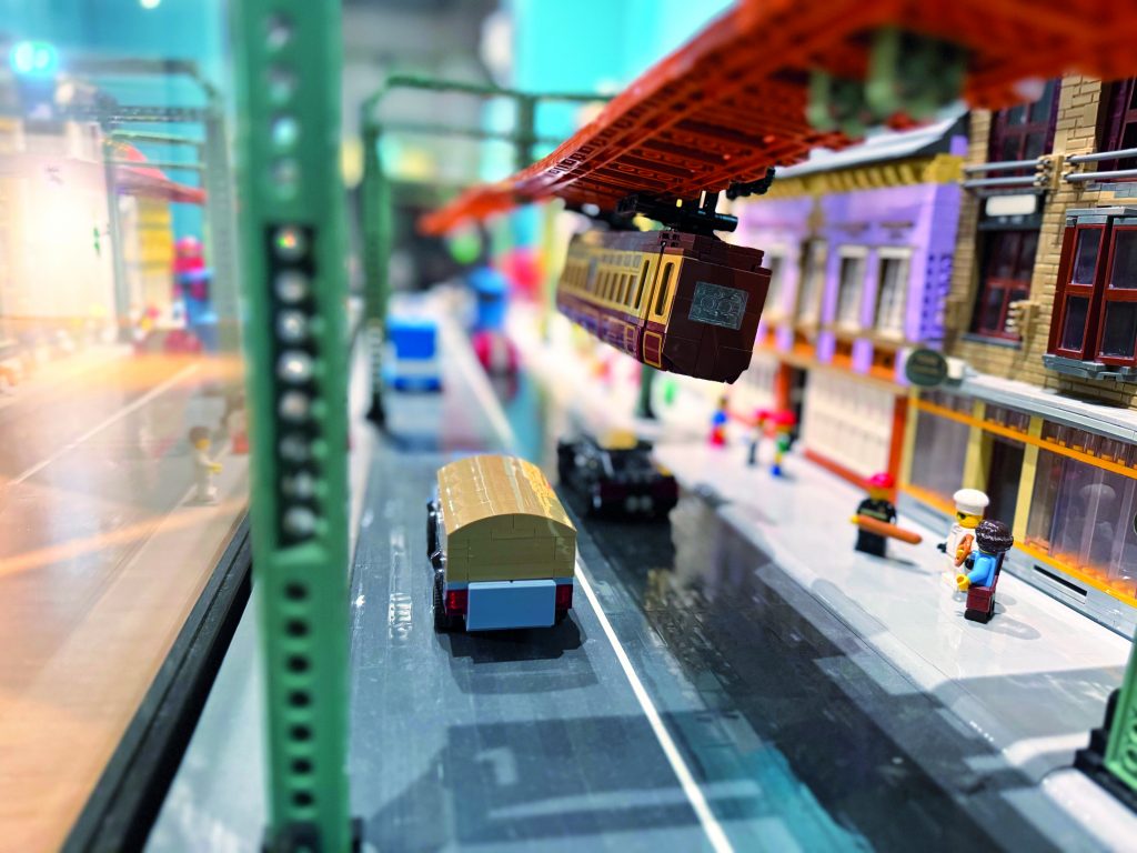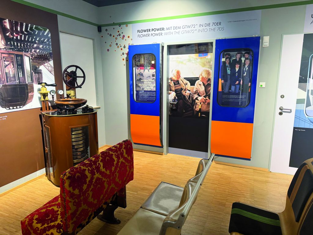 Das Highlight ist aber die virtuelle Zeitreise. Dafür muss man nicht wie Marty McFly in „Zurück in die Zukunft” in einen DeLorean steigen – Martin Bang wollte dieses Erlebnis wirklich authentisch gestalten. Mitarbeiter und Schwebodrom-Führer Markus Schuberth erinnert sich: „Lediglich eine virtuelle Reise zu präsentieren, war uns nicht genug. Wir wollten ein Gesamterlebnis anbieten und hatten das große Glück, dieses alte Fahrzeug aus dem Jahr 1900 – die sogenannte Nuller-Serie – entdeckt zu haben. Die Freunde der historischen Schwebebahn wollten den Wagen selbst renovieren, scheiterten aber daran. Daher konnten wir den entkernten Waggon ins Schwebodrom transportieren und hier renovieren und mit VR-Technik ausstatten.” Eine spektakuläre Aktion, die unter Einsatz von Kran und schwerem Gerät medial für Aufmerksamkeit und bei der gegenüber gelegenen Apotheke für Angstschweiß sorgte. Schließlich ist der Wagen zwölf Meter lang, die Fußgängerzone allerdings nur 13 Meter breit. „Da war absolute Maßarbeit gefordert, die mehrere Stunden gedauert hat”, erinnert sich Schuberth. Da alles gut gegangen ist, können seit Oktober 2023 Interessierte mittels VRBrillen in einem Original-Schwebebahnwagen eine Reise durch das Wuppertal des Jahres 1929 machen. Und das Konzept wird bestens angenommen. „Wir beschränken jeden Zeit-Slot auf 20 Personen und bieten 15 Slots pro Tag an. Der Rundgang dauert 75 Minuten. Ende vergangenen Jahres konnten wir den 100.000. Gast begrüßen.” Wer jetzt Lust bekommen hat, sich einmal selbst auf Zeitreise zu begeben, der kann das mittwochs bis sonntags ab 11 Uhr am Werth 96 in Wuppertal-Barmen tun. Alle weiteren Informationen bekommt man auf der Homepage: