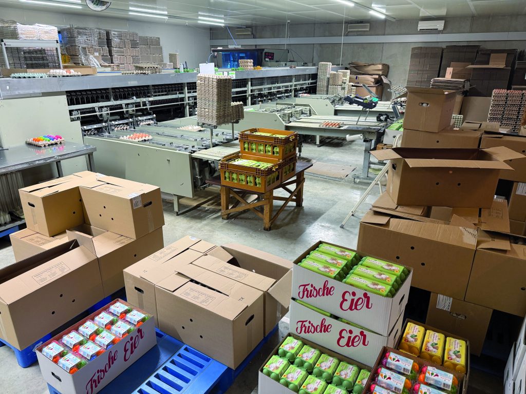 Wenn er sich das Thema Vergrößerung ansieht, wird Markus Kempe bisweilen ein wenig sentimental. „Die dritte Generation Kempe hat seinerzeit ein wenig aufgeschrieben, wie die Dinge sich verändert haben. Da war dann in den Unterlagen auch die Rede davon, sich zu vergrößern. Allerdings ging es da eben um eine Kuh“, sagt er. Seit Ende der 1960er-Jahre gibt es jedoch gar keine Kühe mehr bei Kempe. „Damals haben wir uns zum reinen Geflügelhof gewandelt“, sagt Markus Kempe. Rund 25.000 Legehennen gibt es inzwischen auf dem Hof, die alle in Bodenhaltung leben. Hans Hermann Kempe, Vater der aktuellen Geschäftsführer, hat in den 1990er-Jahren für ein weiteres Standbein gesorgt – dank eines großen Damwild-Geheges, sodass zum Angebot des Bauernhofs seitdem auch Wildfleisch gehört. Neben der Präsenz auf den Wochenmärkten ist der Hofladen mit seinem großen Angebot ein weiteres wichtiges Standbein für den Bauernhof – ebenso wie ein Verkaufsautomat, an dem zum Beispiel auch Grillfleisch rund um die Uhr gekauft werden kann. Familie Kempes könnte also zufrieden sein, wäre da nicht die Verpackungsindustrie. „Die Lieferzeiten für unsere Eierkartons und Eierschachteln sind aktuell eine einzige Katastrophe, zudem sind die Preise sehr hoch. Das merkt man im Alltag“, erläutert Markus Kempe. Der Blick in die Produktionshalle macht die Dimensionen deutlich: Hier werden tagtäglich rund 20.000 Eier verarbeitet, das heißt gesichtet, gewogen und verpackt. Auf dem Bauernhof Kempe sind eben nicht nur die Mitarbeiter fleißig, sondern auch die Hühner.#